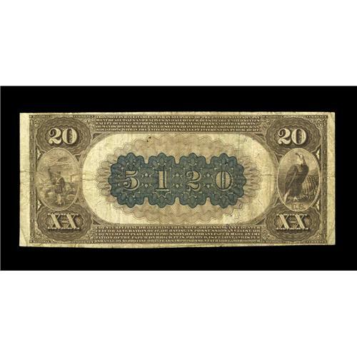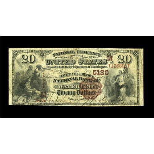 <B>Waterloo, IA</B></I> - $20 1882 Brown Back Fr. 504 <B>The Leavitt & Johnson NB</B></I> Ch. # (M)5120<BR>Several Brown Backs are known on this private name bank, but they appear quite infrequently at auction. This pleasing <B>Fine+++</B></I> example is basically perfect for the grade, with plenty of body and lovely pen signatures that further enhance its eye appeal.
