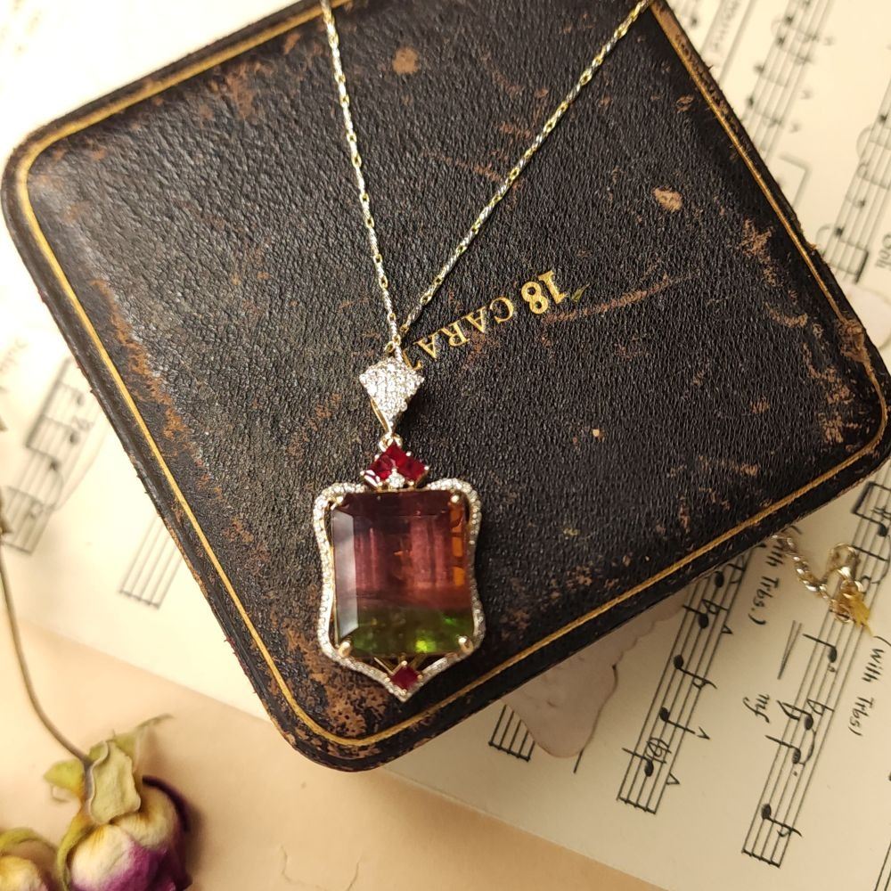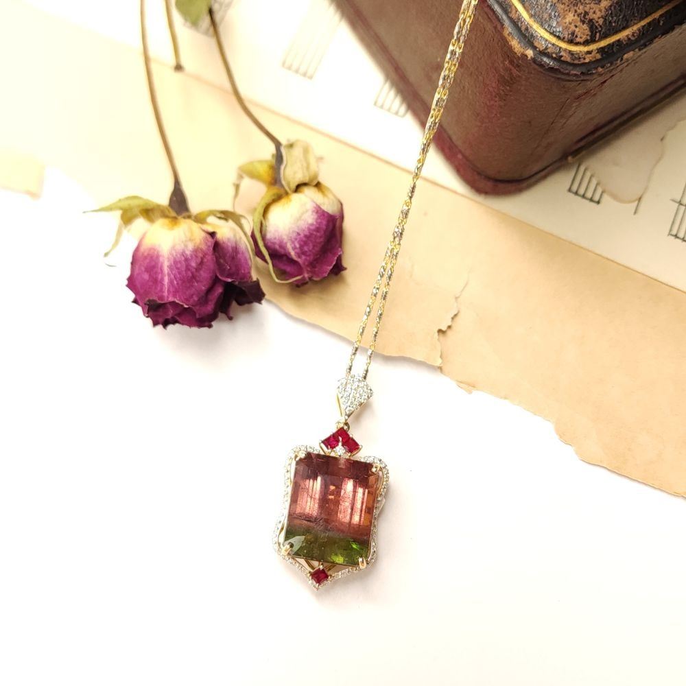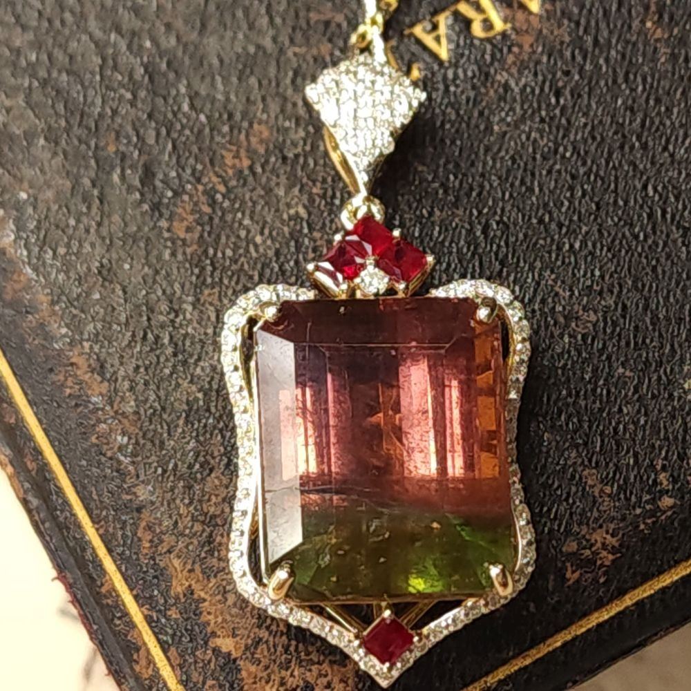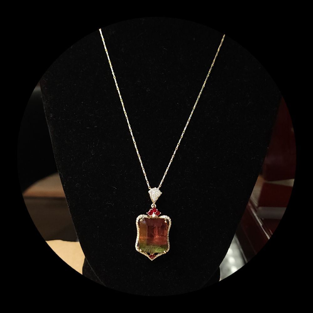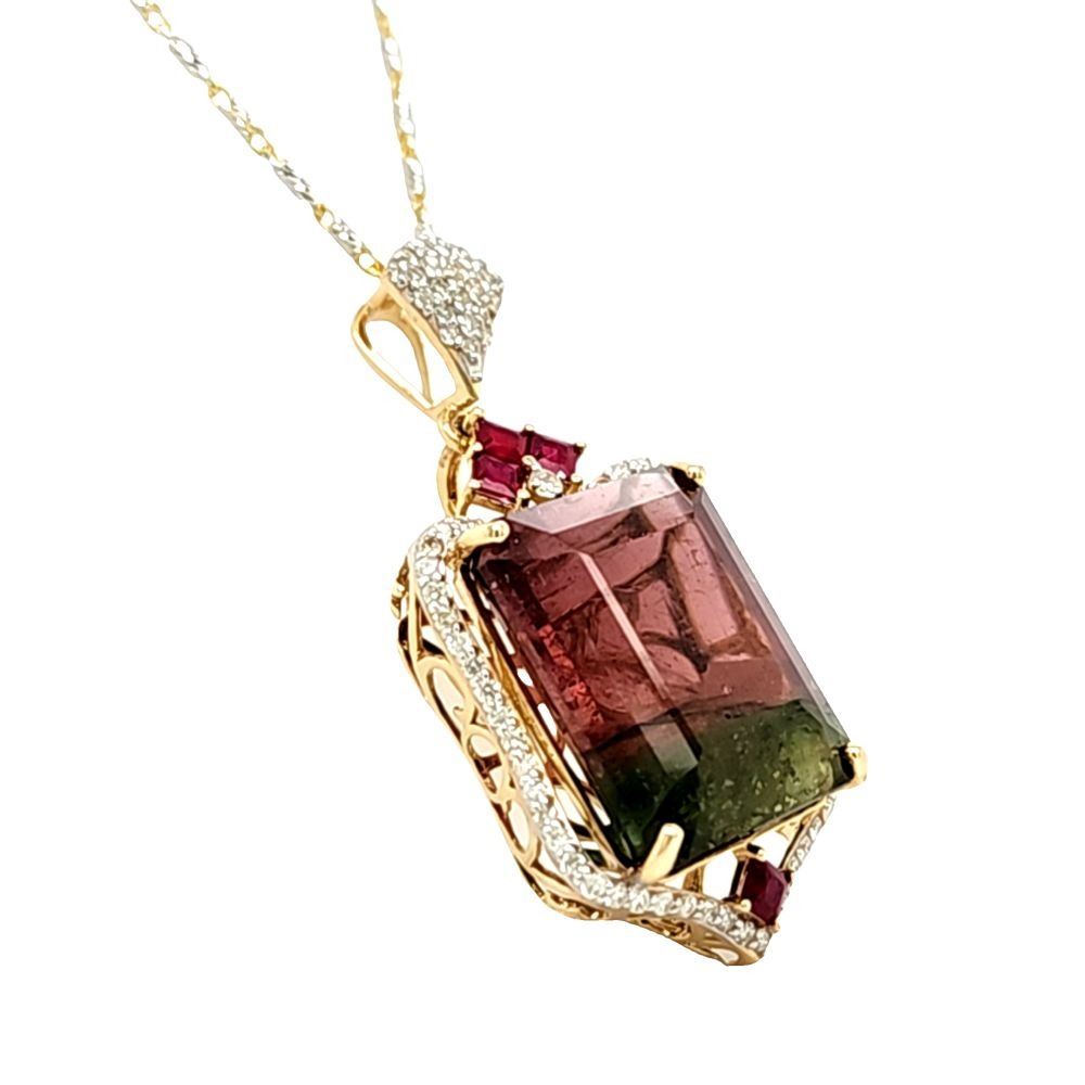 Watermelon Tourmaline, Ruby, and Diamond Necklace