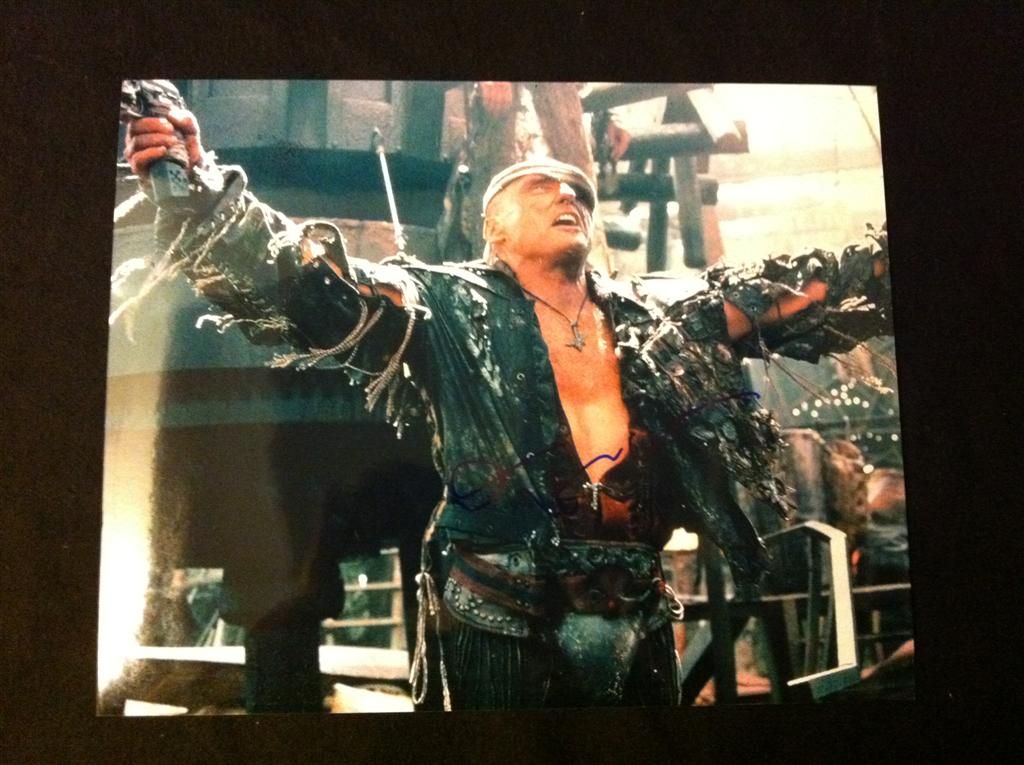 8 x 10 color photo of Dennis Hopper in Waterworld, signed by the actor in blue felt pen.