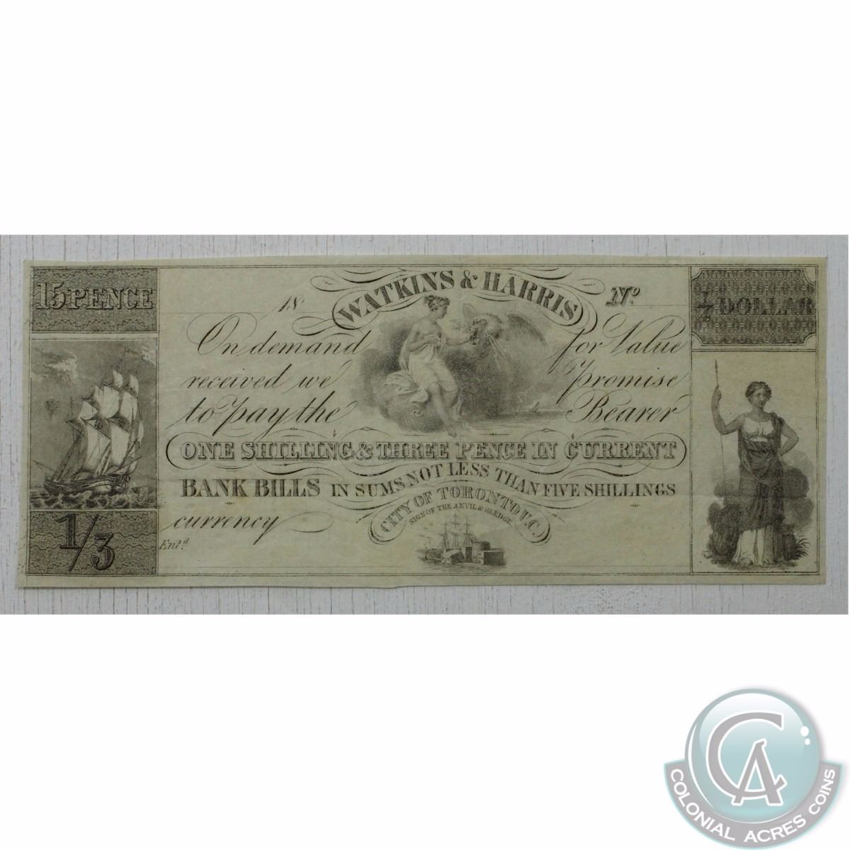 Watkins & Harris 15 Pence Merchant Script remainder in Extra Fine Condition.