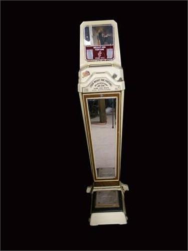 Watling 1 Cent penny scales, porcelain framed, mirror back, very good condition, 65 inches tall.