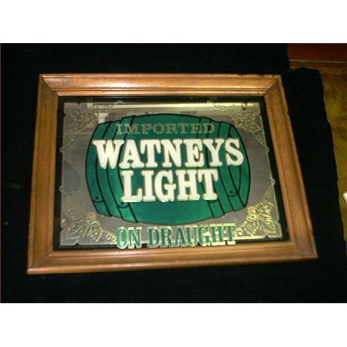 Watneys light on Draught Beer Sign Mirror. I have been doing this for 47 years and never heard of this one. It is in great condition and has a beautiful wooden frame. Very colorful one and is 18" X 14" and will add to any collection you have. Great gift item, as holidays are coming. Hope you enjoy it. GREAT GIFT ITEM AND HAPPY HOLIDAYS