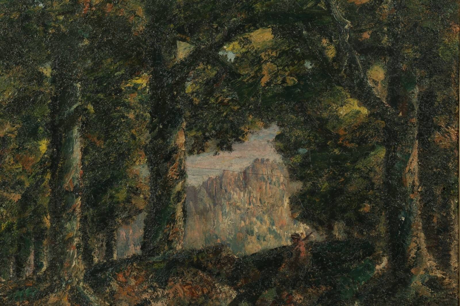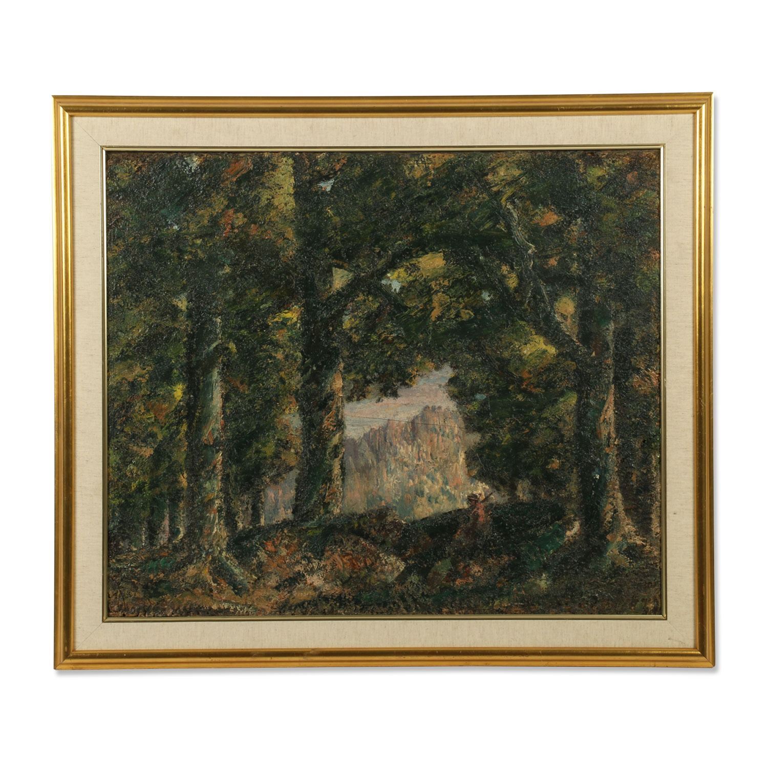 Titled, "Oak Forest Vista" verso. Oil-on-canvas. Signed lower left, 25.5" x 31.5". Labeled verso. Note: A sister painting, 'The Valley of the Ridge' is shown in the catalogue of 'Homer Watson in the Kitchener Waterloo Art Gallery' figure 127, p. 119, 1987.