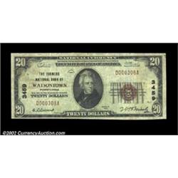 Watsontown, PA - $20 1929 Ty. 1 The Farmers NB Ch. # 3459Evenly circulated Fine+ example, trimmed a.