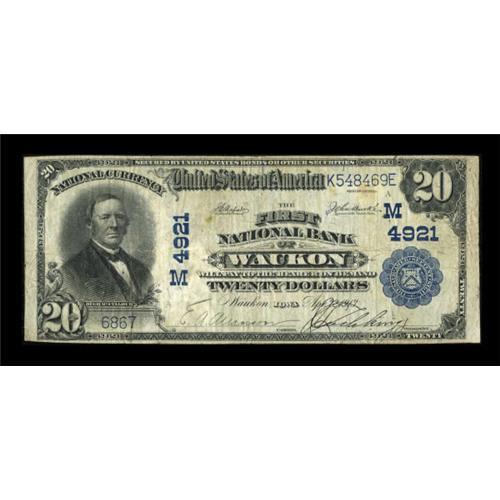 <B>Waukon, IA</B></I> - $20 1902 Plain Back Fr. 656 <B>The First NB</B></I> Ch. # (M)4921<BR> Large notes only from this institution. Pen signed <B>Fine.</B></I><BR><I>From The Thomas M. Flynn Collection</B></I><BR><BR><b>Shipping:</b> Coins & Currency (<a target="_blank" href="http://www.heritageauctions.com/common/shipping.php">view shipping information</a>)