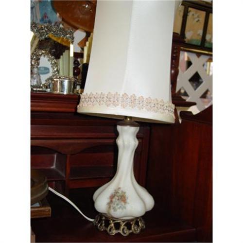 I am listing this for a friend who acquired it at an estate sale. I find no markings as was common with most of the older Wave Crest items. It has all the earmarks of Wave Crest but you be the judge. The shade has had some tape wrapped around the wire at the top but it does not show unless you a looking down directly over it. Stands 20 inches tall including the shade and is really a pretty lamp. No chip, cracks or crazing. Please furnish zip code for shipping quote. Thanks!
