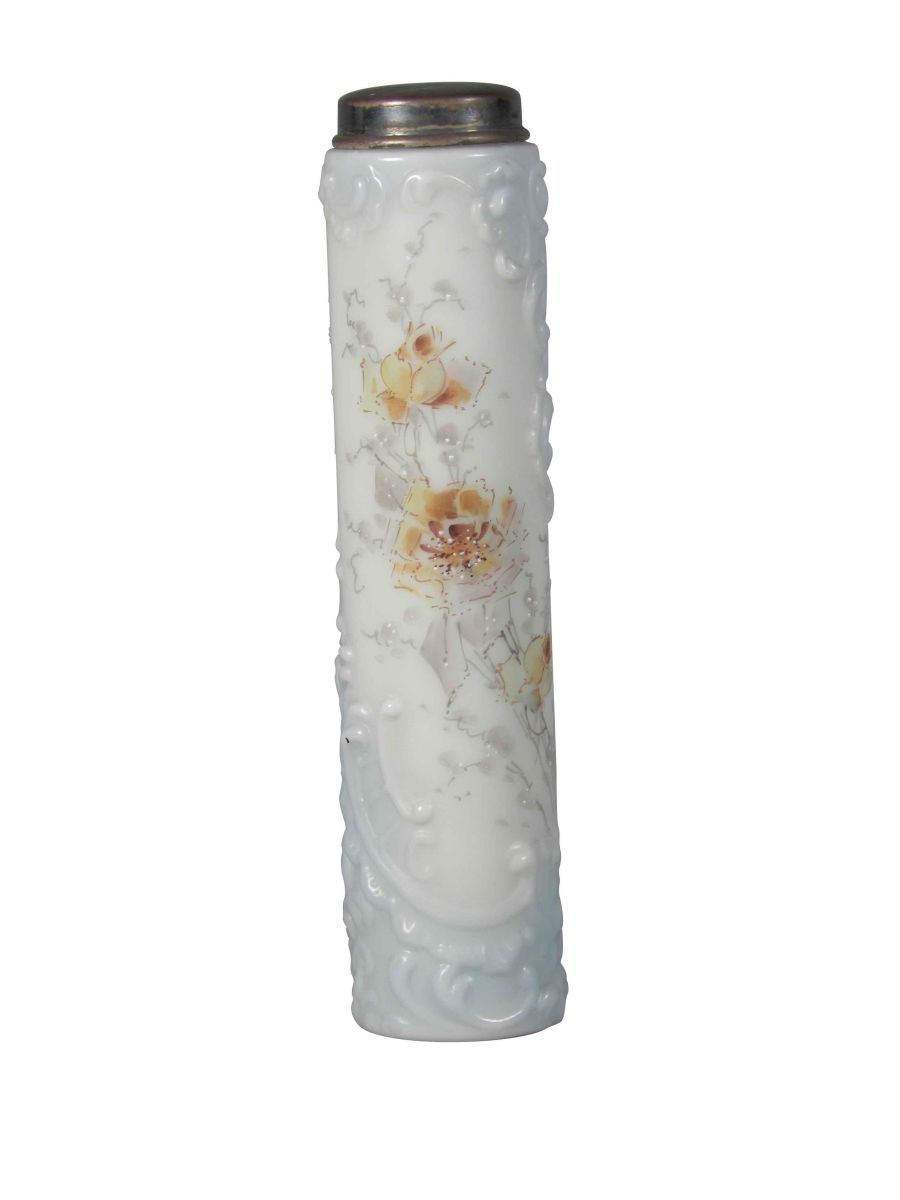 Wave Crest Tall Dresser Jar. Marked with Wave Crest Hallmark. Blue/white with high relief and monogram lid "MLJ". Tiny chips around lip otherwise no cracks, excellent condition. 7 1/4 inches tall.