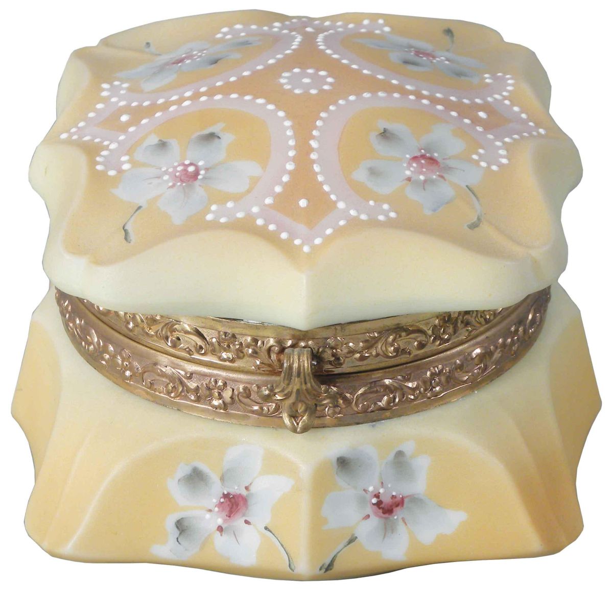 Wavecrest Dresser Pin Box, unusual mustard color. Marked Nakara, CFM Co. No chips or cracks, excellent condition. 4 X 3 X 4 inches. Start Price $50