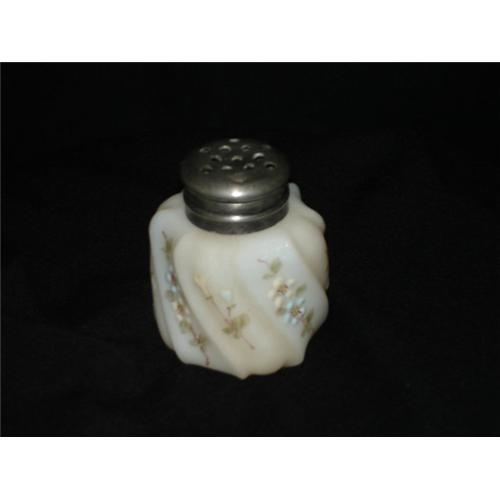 The Wave Crest Salt is an Eric Twist pattern. Blue and white flowers are on stems of dainty pale green leaves, which is handpainted on satin opalware. The top of the salt fits snug and easily twists on and off and in good working condition. The salt measures 2-1/4"h x 2"w x 1-3/4"d and in excellent condition. There are only wear marks on the lid, otherwise, this salt is a beauty!