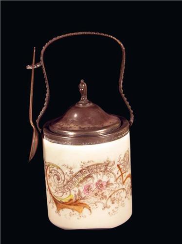 Wavecrest Wave Crest Jam Jar with floral whimsy design. Marked on bottom, no chips or cracks. 7 1/2 inches tall X 3 1/2 inch dia.