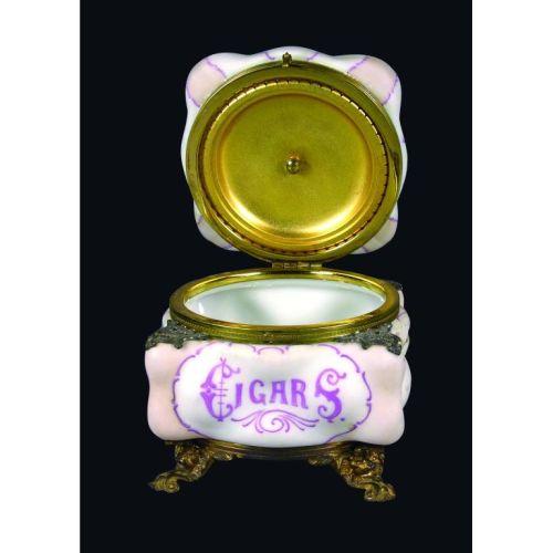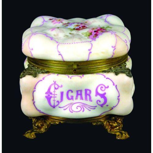 Wavecrest Large Footed Cigar Box, unmarked. No chips or cracks. 6 1/2 sq. x 6 1/2 inches tall.