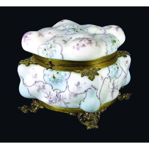Wavecrest Large Footed Dresser Box, unmarked. No chips or cracks. 6 1/2 sq. x 6 1/2 inches tall.