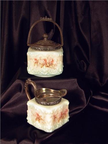 Wavecrest Wave Crest Sugar/Creamer, blow out floral pattern. Marked on bottom, no chips or cracks.