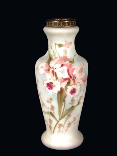 Wavecrest Wave Crest Vase, floral pattern front and back. Unmarked, no chips or cracks. 8 inches tall X 3 1/4 inch dia.
