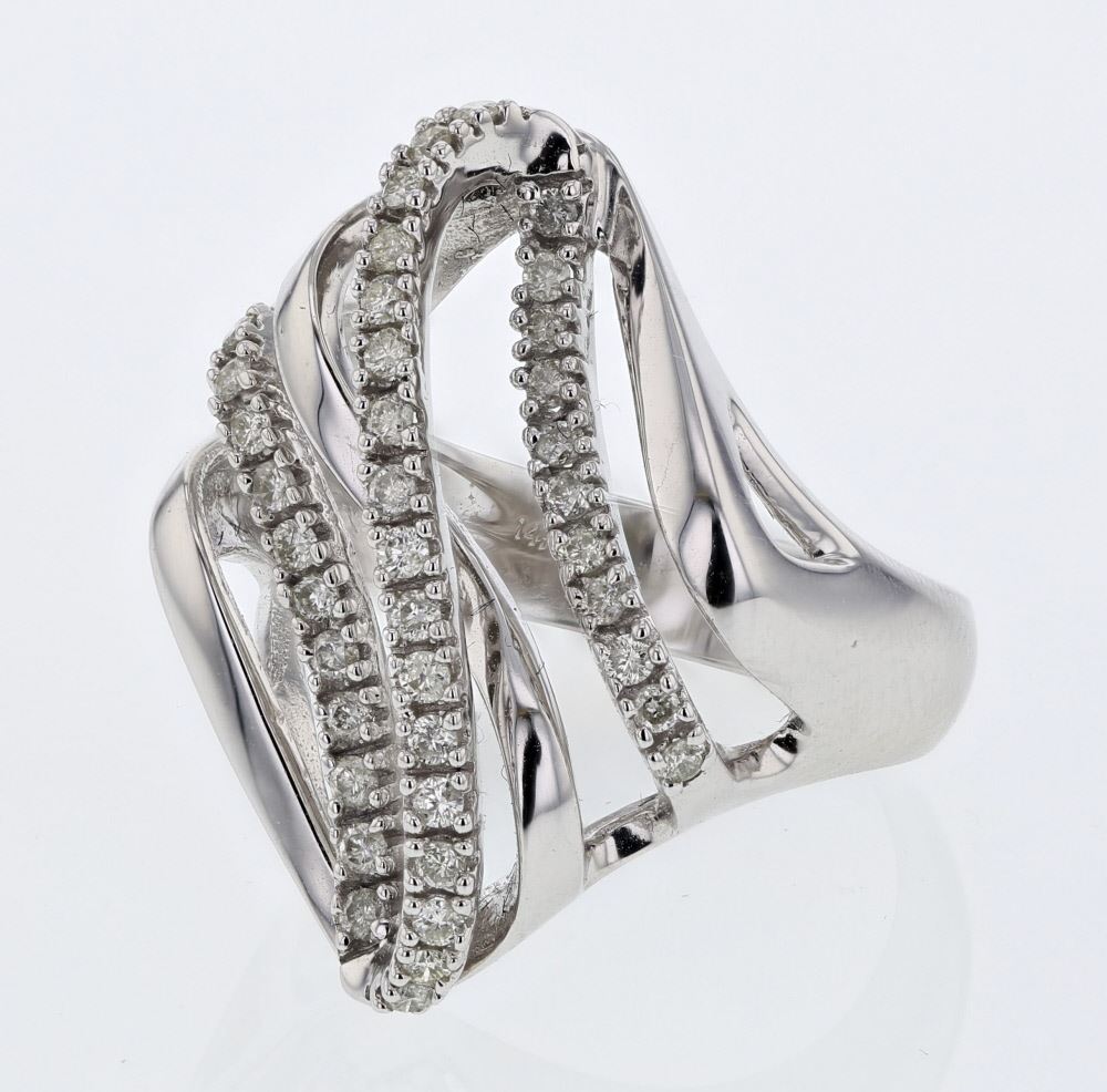 Wavy Overlapping Prong-set Diamond Ring in 18K White Gold | 325658 6.5 Grams, featuring 0.45 ct 39 ct ct 18 ct