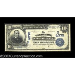<TABLE cellSpacing=0 cellPadding=0 width="100%" bgColor=#000000 border=0><TBODY> <TR><TD width="100%"><TABLE cellSpacing=1 cellPadding=3 width="100%" border=0><TBODY><TR><TD width="100%" bgColor=#79735c><FONT face=arial color=#ffffff size=3><B>Description</B> </FONT></TD></TR><TR><TD width="100%" bgColor=#ffffff><FONT face=arial size=2><B>Waxahachie, TX</B></I> - $10 1902 Date Back Fr. 619 <B>The Waxahachie NB</B></I> Ch. # (S)4379<BR>This large size example is trimmed a little tight at the top, otherwise it is absolutely problem-free with stamped signatures that are somewhat obscured because they were positioned a little high. <B>Fine-Very Fine.</B></I> (400-600 ) </FONT></TD></TR></TBODY></TABLE></TD></TR></TBODY></TABLE><BR><TABLE cellSpacing=0 cellPadding=0 width="100%" bgColor=#000000 border=0><TBODY><TR> Important notice: Heritage usually auctions material at the rate of 200-250 lots per hour. On some occasions eBay Live bid software or the Internet may not be able to keep up with the pace of the auction. We recommend placing a realistic absentee bid now as insurance to avoid disappointment. Occasionally the auctioneer may eliminate or reject an eBay Live bid, and the auctioneer may also reopen a lot after the close of the eBay live bidding (usually because we missed an audience bid), and may reject your bid even if it shows you as the winning bidder. By bidding via eBay Live, you agree that Heritage may award the lot to another bidder at its sole discretion under the circumstances described above or any other reasonable circumstances. Also please note that all Heritage lots purchased through eBay Live carry a 20% Buyer's Premium. Please make sure you read the Terms and Conditions before you bid.</TR></TBODY></TABLE>