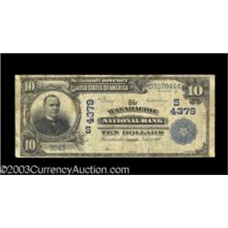 <TABLE cellSpacing=0 cellPadding=0 width="100%" bgColor=#000000 border=0><TBODY> <TR><TD width="100%"><TABLE cellSpacing=1 cellPadding=3 width="100%" border=0><TBODY><TR><TD width="100%" bgColor=#79735c><FONT face=arial color=#ffffff size=3><B>Description</B> </FONT></TD></TR><TR><TD width="100%" bgColor=#ffffff><FONT face=arial size=2><B>Waxahachie, TX</B></I> - $10 1902 Date Back Fr. 619 <B>The Waxahachie NB</B></I> Ch. # (S)4379<BR>A second Third Charter Date Back, this one a little more worn and with some very minor staining. <B>Very Good.</B></I> (300-400 ) </FONT></TD></TR></TBODY></TABLE></TD></TR></TBODY></TABLE><BR><TABLE cellSpacing=0 cellPadding=0 width="100%" bgColor=#000000 border=0><TBODY><TR> Important notice: Heritage usually auctions material at the rate of 200-250 lots per hour. On some occasions eBay Live bid software or the Internet may not be able to keep up with the pace of the auction. We recommend placing a realistic absentee bid now as insurance to avoid disappointment. Occasionally the auctioneer may eliminate or reject an eBay Live bid, and the auctioneer may also reopen a lot after the close of the eBay live bidding (usually because we missed an audience bid), and may reject your bid even if it shows you as the winning bidder. By bidding via eBay Live, you agree that Heritage may award the lot to another bidder at its sole discretion under the circumstances described above or any other reasonable circumstances. Also please note that all Heritage lots purchased through eBay Live carry a 20% Buyer's Premium. Please make sure you read the Terms and Conditions before you bid.</TR></TBODY></TABLE>