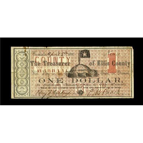<B>Waxahachie, TX- Ellis County</B></I> $1 April 8, 1863 Medlar 4<BR>A colorful example in nice grade. <B>Fine-Very Fine.</B></I><BR><I>From The William A. "Bill" Bond Collection</B></I><BR><BR><b>Shipping:</b> Coin/Currency (<a target="_blank" href="http://www.heritageauctions.com/common/shipping.php">view shipping information</a>)