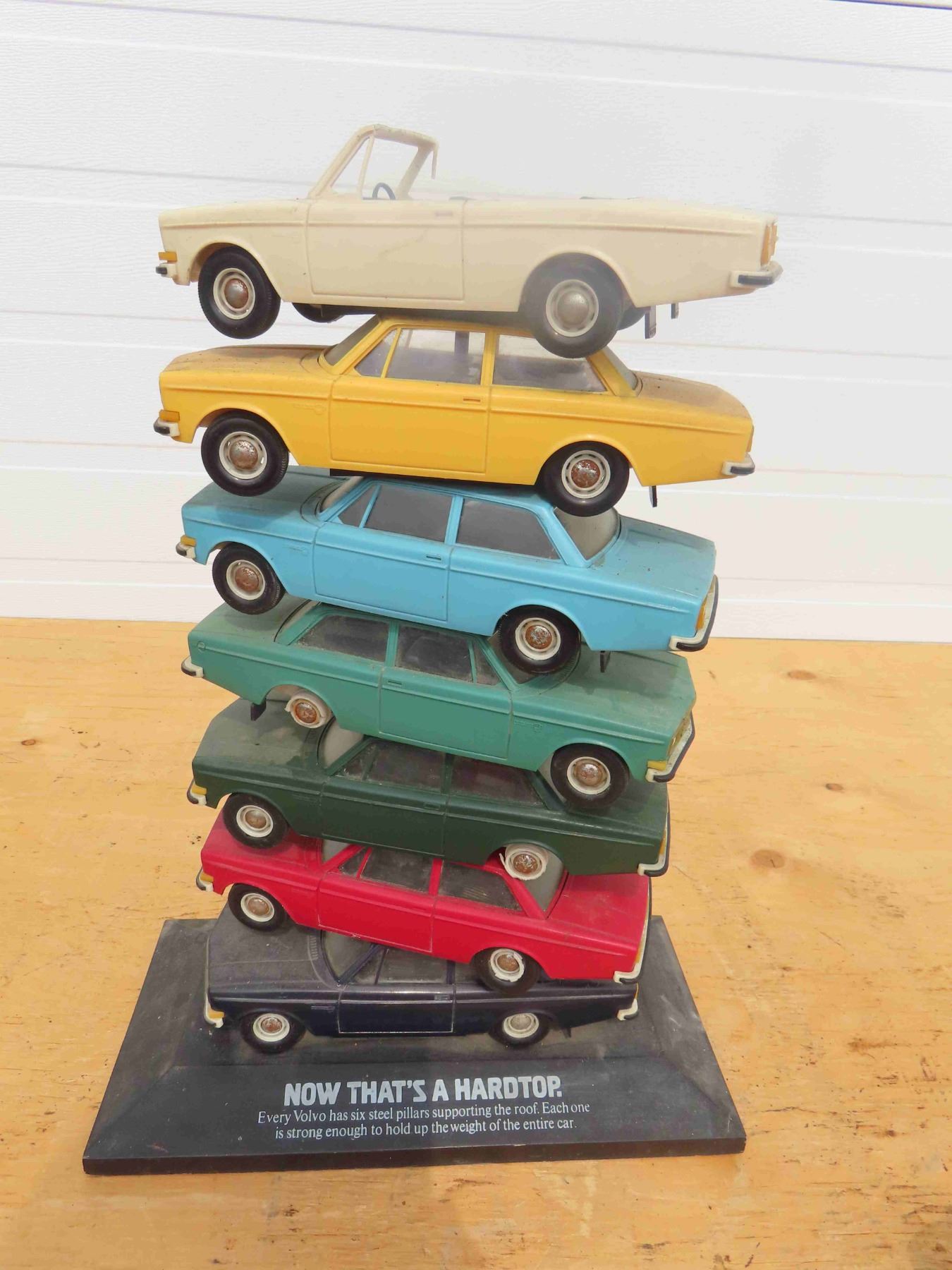 Way Beyond Cool Volvo Dealer Counter Display with 7 Plastic Cars Stacked 18'' Tall Plus Volvo Turbo Grill 24'' x 9''