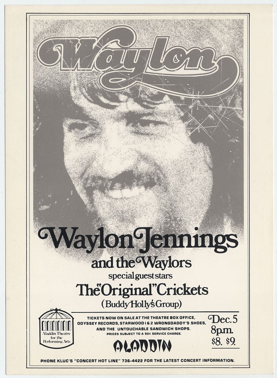 Waylon Jennings / The Crickets 1978 Las Vegas Concert Handbill