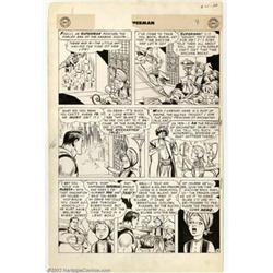 Wayne Boring and Stan Kaye - Original Art for Superman #95, page 4 (DC, 1955). A rare example from Superman's main artist of the 1950s, featuring "Susie's Enchanted Isle". Superman is prominently featured in many of the panels, as he tries, in a hilarious exchange of dialogue, to understand what Susie did with their time machine. The back of the piece has an inked drawing of a Victorian-style woman, possibly done in preparation for her appearance in another story. The art is in very good condition, with two rounded corners and part of the logo stat missing at the top, and measures 13" x 9.5".  Important notice: We expect to be auctioning lots at the rate of 200-250 per hour. Sometimes eBay Premier live bid software cannot keep up with that pace, so we strongly recommend that you place a realistic proxy bid now as insurance to avoid disappointment. Also please note that all Heritage/CAA lots purchased through eBay Premier carry a 20% Buyer's Premium.