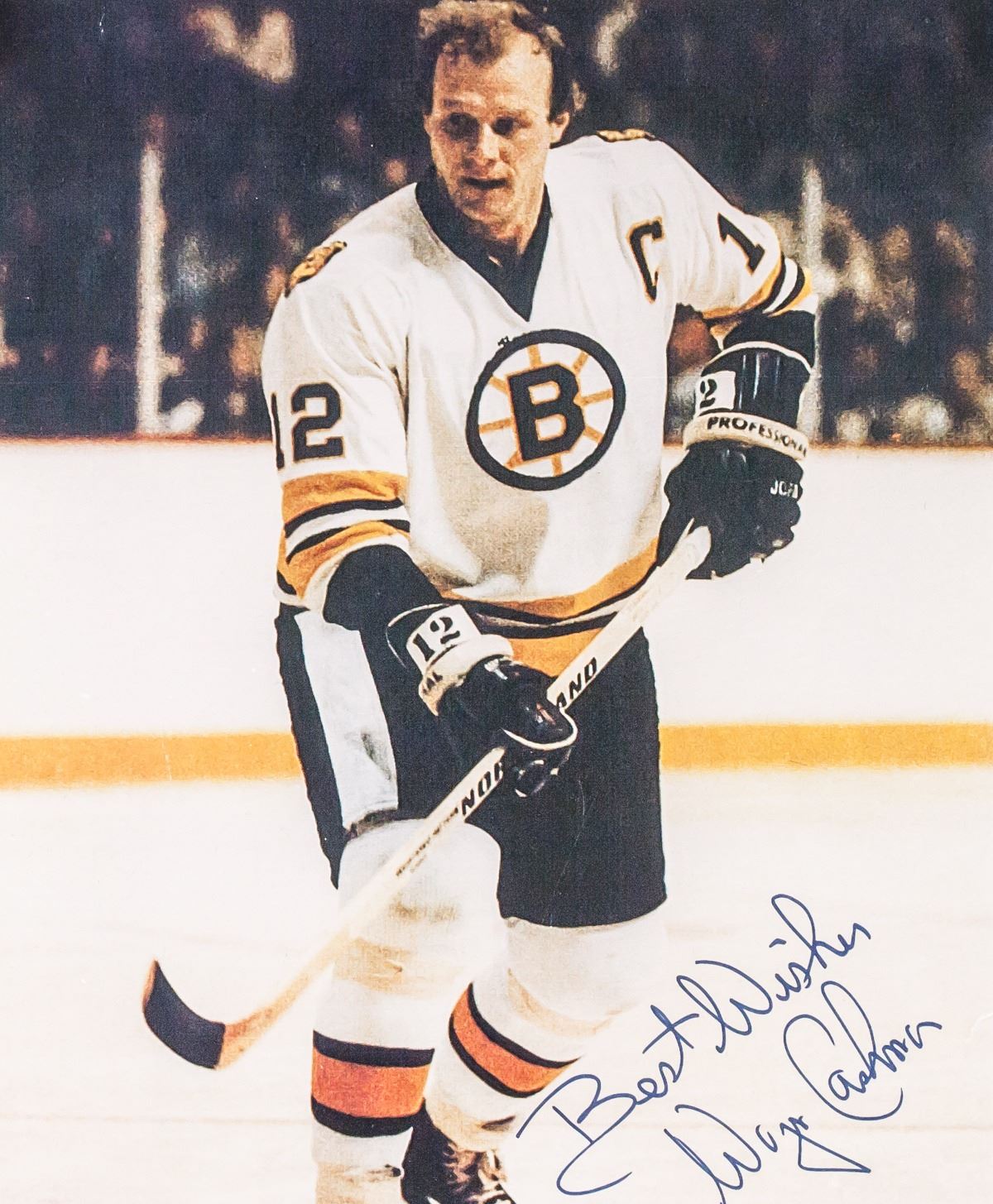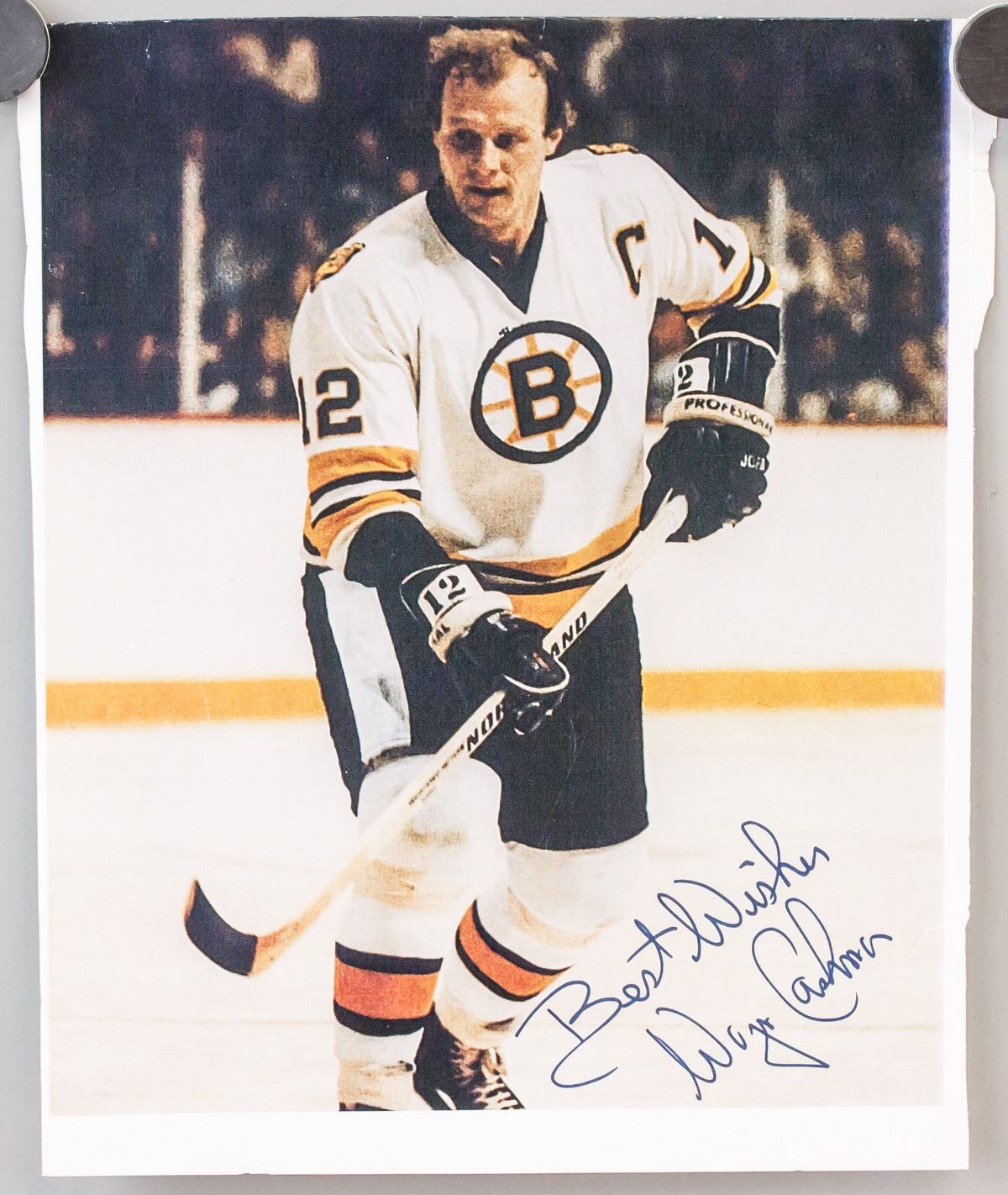 An autographed photograph. Hand signed Wayne Cashman (1945- , Canadian). Wayne Cashman is a Canadian former professional ice hockey player and a former coach. He played seventeen seasons for the Boston Bruins of the National Hockey League and helped them win the Stanley Cup twice. 10 x 8 inches