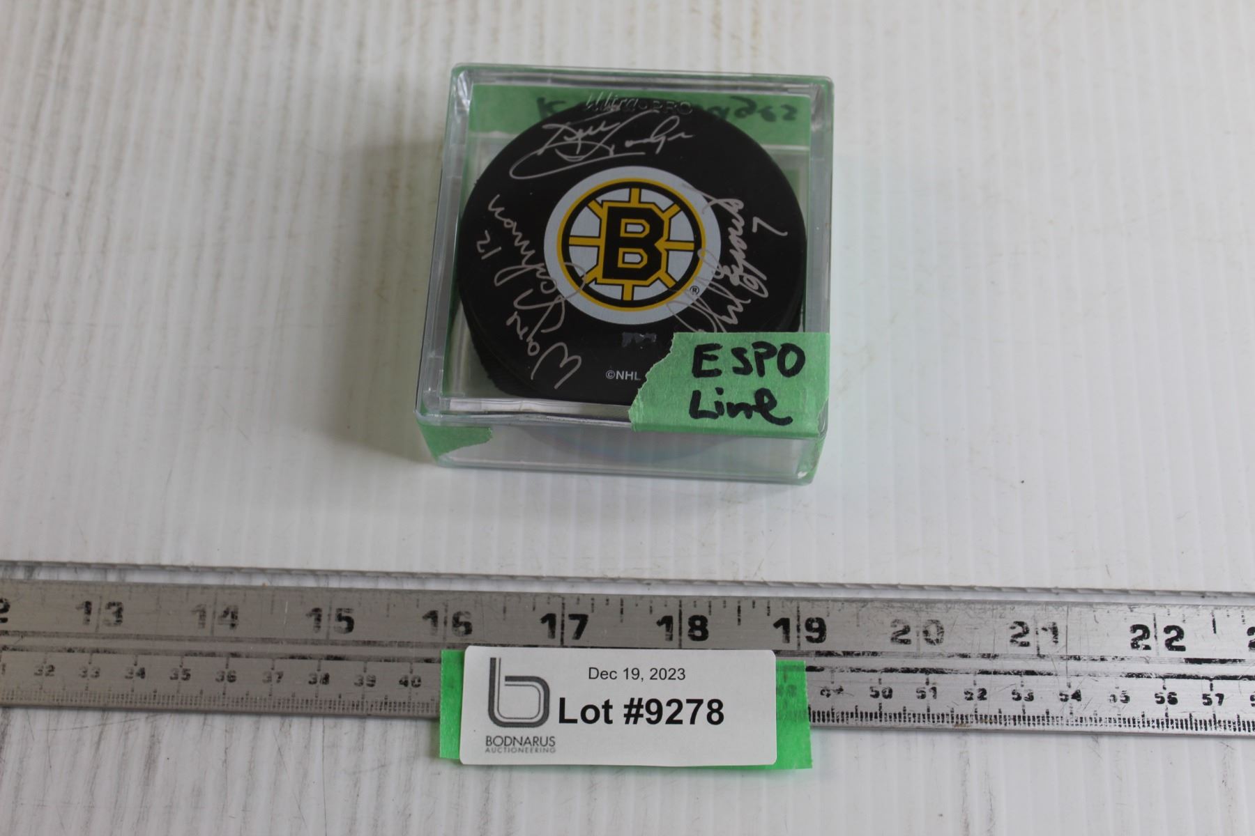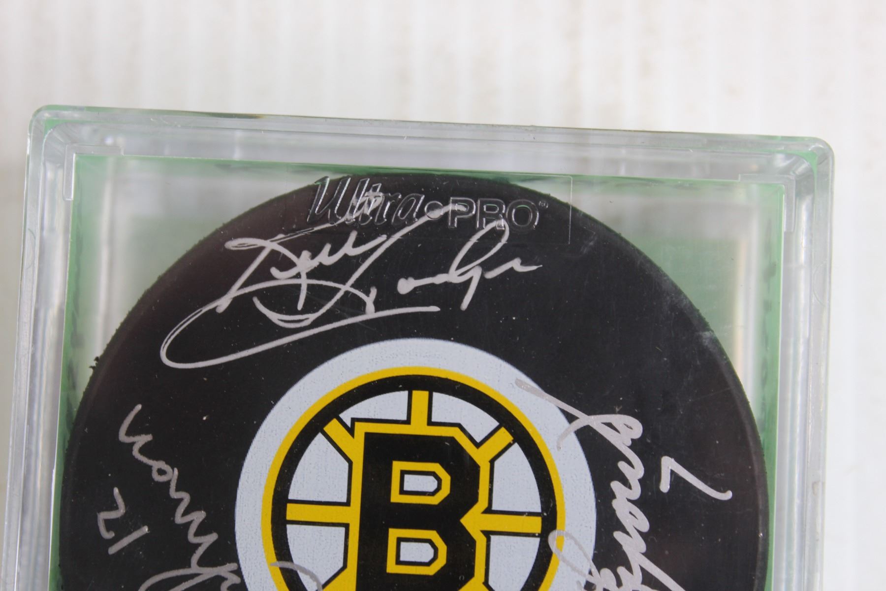 Wayne Cashman, Ken Hodges, and Phil Esposito Signed Hockey Puck w/ Certificate of Authenticity