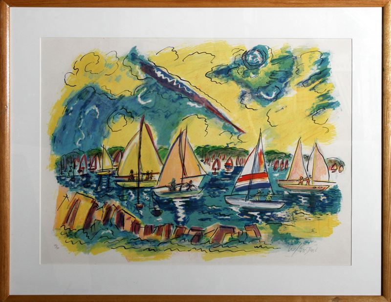 Wayne Ensrud, Afternoon Sails, Lithograph