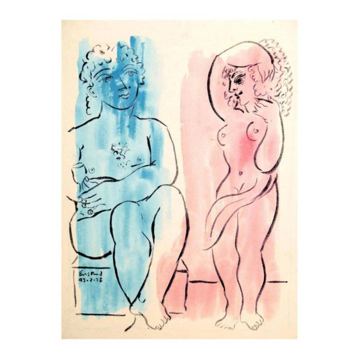 "Artist and Muse 1" is an original Mixed Media on Board by Wayne Ensrud. The piece is hand signed by the artist and comes with a Certificate of Authenticity. Measures approximately 14" x 11". Reference #: 232473