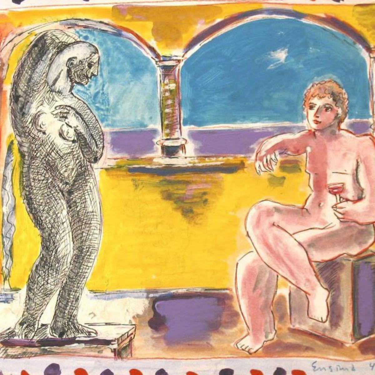 "Artist and Muse 3" is a framed original Mixed Media on Board by Wayne Ensrud. The piece is hand signed by the artist and comes with a Certificate of Authenticity. Measures approximately 16" x 20" (framed) 14" x 18" (image). Reference #: 232475