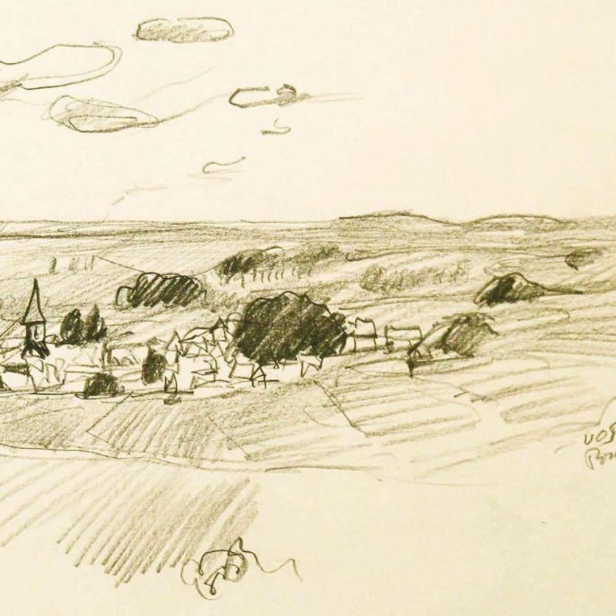 Wayne Ensrud "Burgundian Village of Vosne-Romanee, Burgundy" Pencil Original Artwork; Hand Signed; C