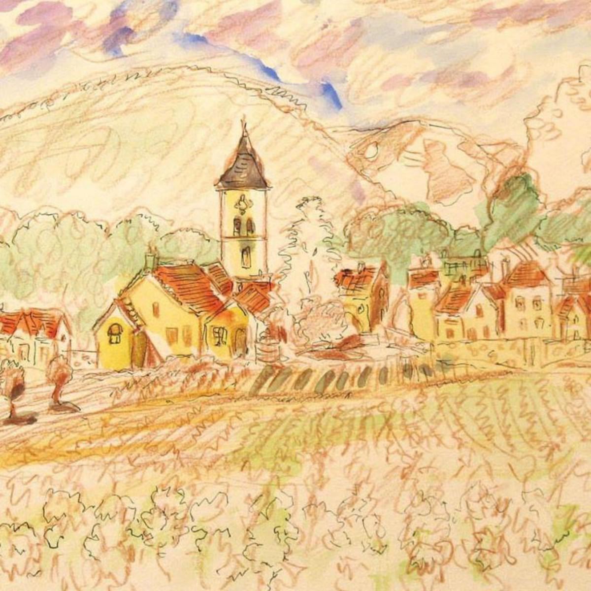 "Chambolle-Musigny, Burgundy" is an original Mixed Media on Paper by Wayne Ensrud. The piece is hand signed by the artist and comes with a Certificate of Authenticity. Measures approximately 13" x 17". Reference #: 232496