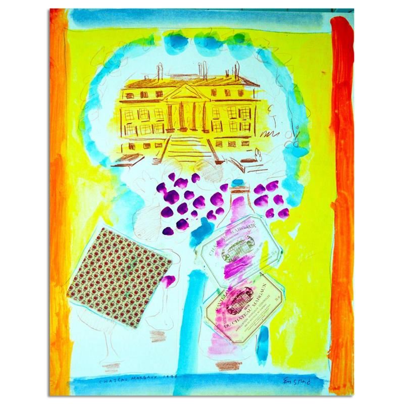 "Chateau Margaux With 1979 Wine Label" is an original Mixed Media on Board by Wayne Ensrud. The piece is hand signed by the artist and comes with a Certificate of Authenticity. Measures approximately 24" x 19".