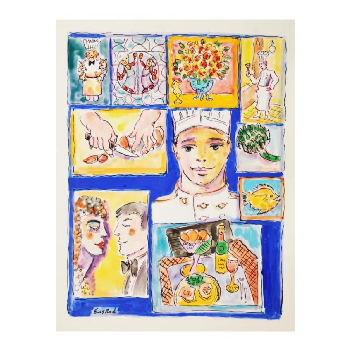 "Cuisine" is an original Mixed Media on Board by Wayne Ensrud. The piece is hand signed by the artist and comes with a Certificate of Authenticity. Measures approximately 14" x 11". Reference #: 232546