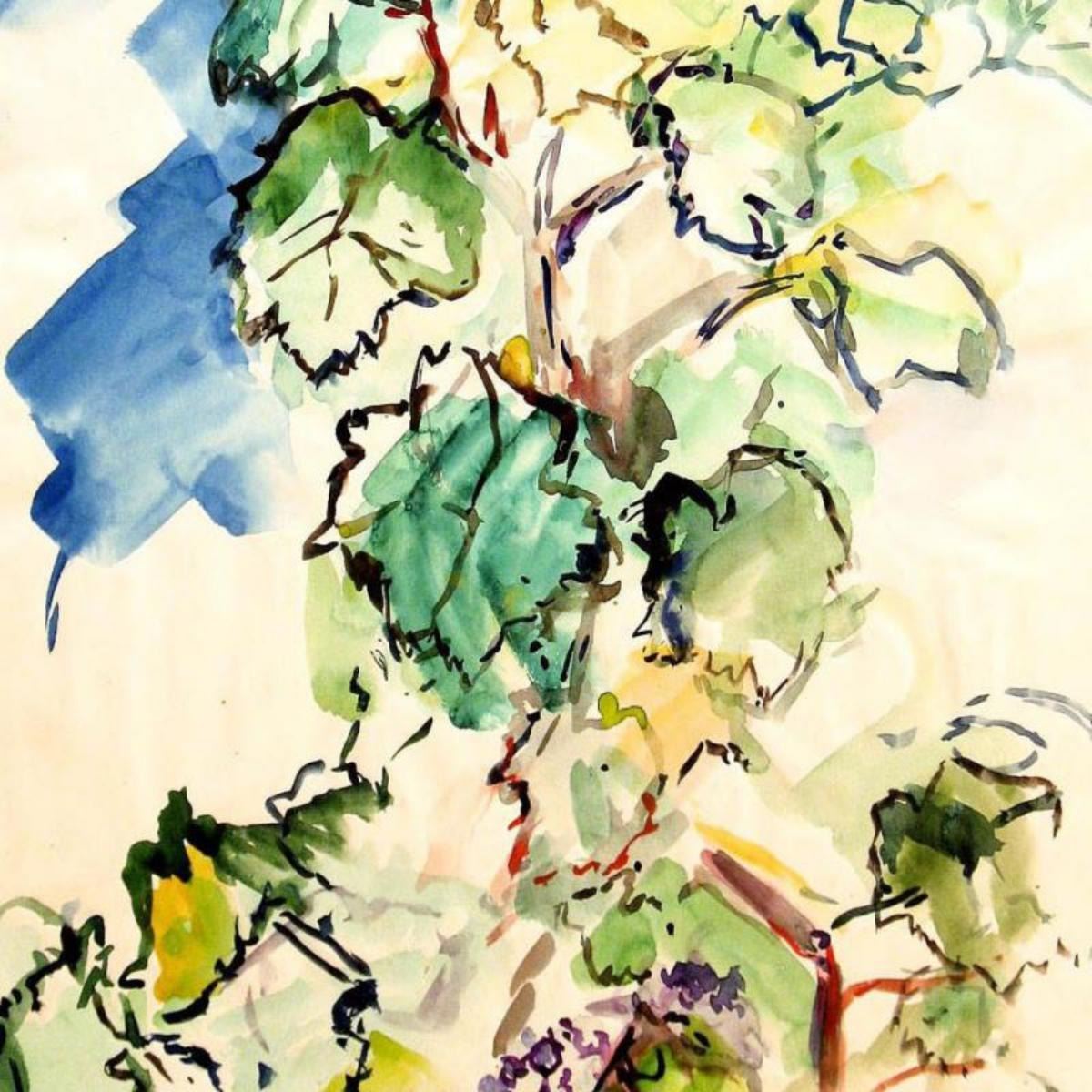 "Grapevines" is an original Watercolor on Paper by Wayne Ensrud. The piece is hand signed by the artist and comes with a Certificate of Authenticity. Measures approximately 25" x 19". Reference #: 232566