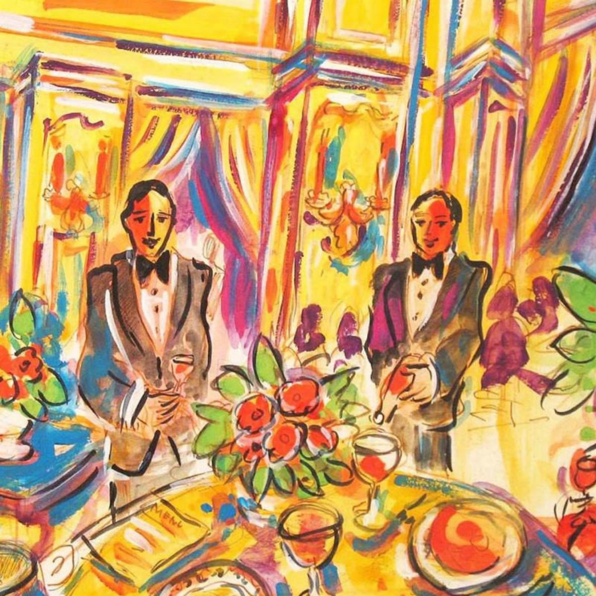 "Restaurant Pic" is an original Mixed Media on Board by Wayne Ensrud. The piece is hand signed by the artist and comes with a Certificate of Authenticity. Measures approximately 12" x 18". Reference #: 232623