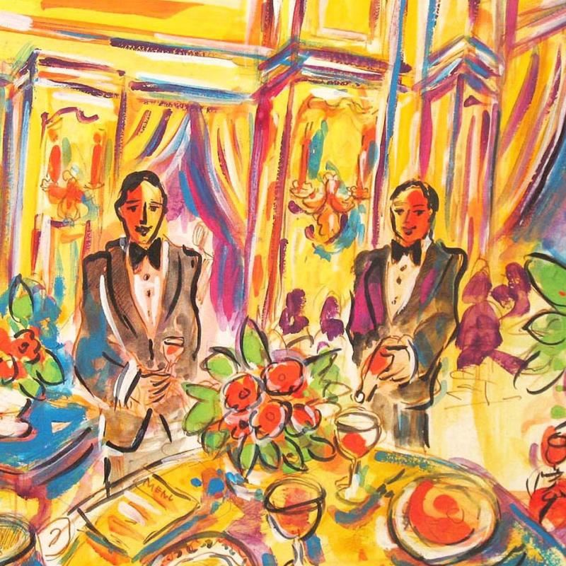"Restaurant Pic" is an original Mixed Media on Board by Wayne Ensrud. The piece is hand signed by the artist and comes with a Certificate of Authenticity. Measures approximately 12" x 18".