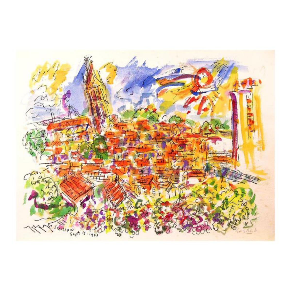 "St Emilion - 1" is an original Mixed Media on Paper by Wayne Ensrud. The piece is hand signed by the artist and comes with a Certificate of Authenticity. Measures approximately 22" x 30". Reference #: 232635