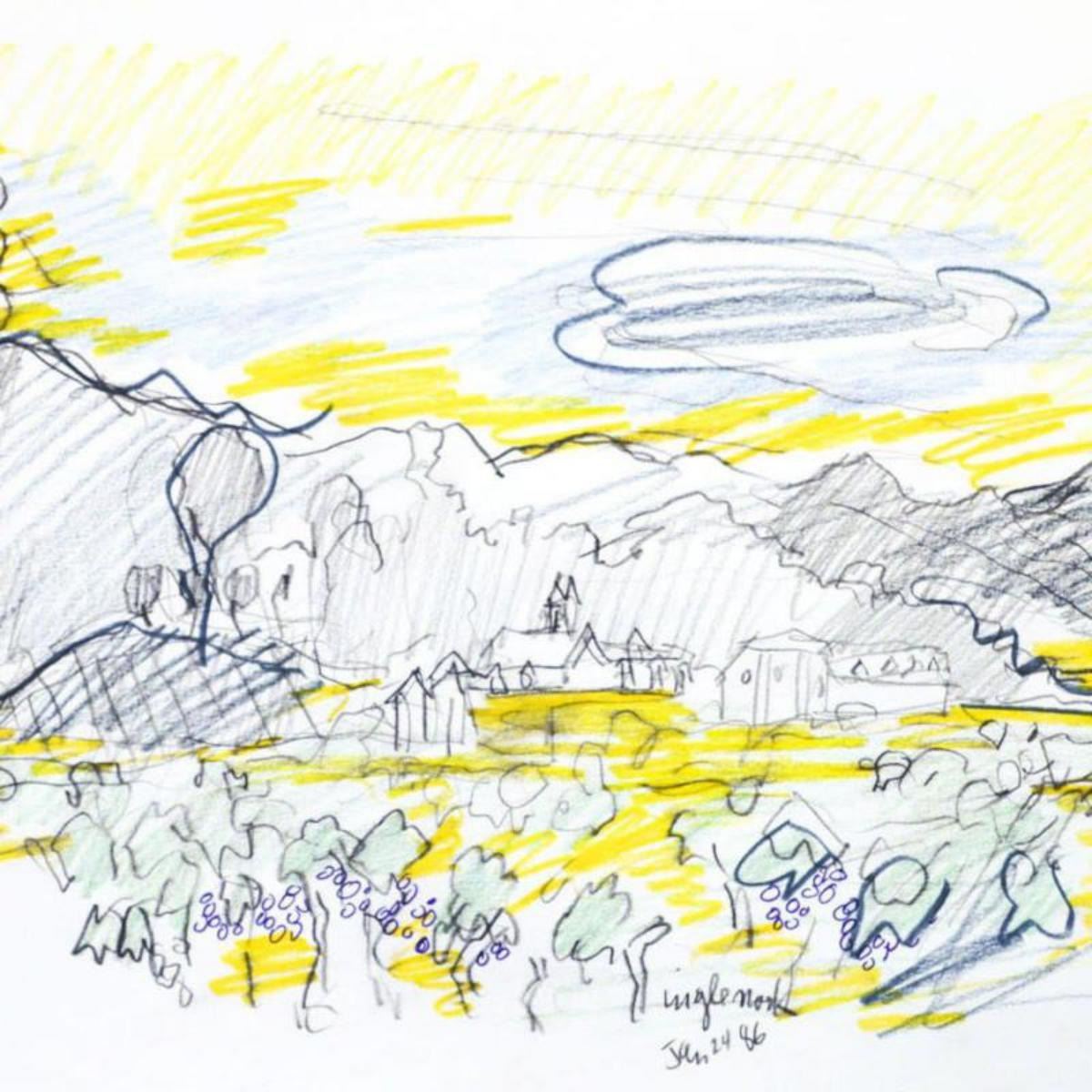 Wayne Ensrud "View of Inglenook Winery, Napa Valley" Pencil Original Artwork; Hand Signed; COA