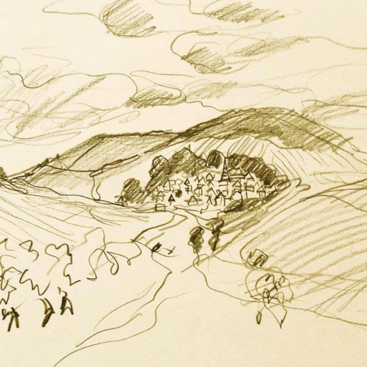 Wayne Ensrud "View of Nuits St Georges, Burgundy" Pencil Original Artwork; Hand Signed; COA