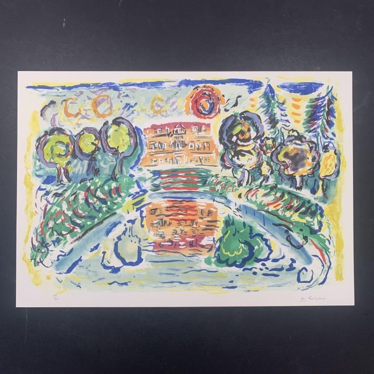 Wayne Ensrud's "Chateau de Louviere" limited edition print, signed lower right, and numbered 119/300 lower left. A colourful piece in a bit of an abstract, depicting the Chateau de Louviere. This piece is in excellent condition.