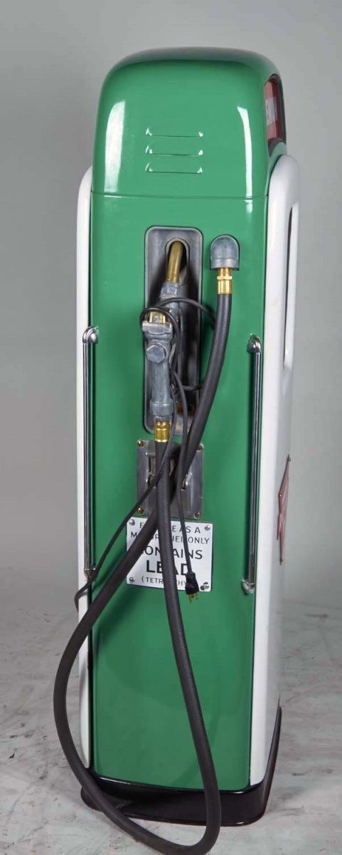 Model 80 gas pump restored green, white, and red with light-up top globe, serial no. 111267. Condition (Very good). Size 62" x 16" x 21"