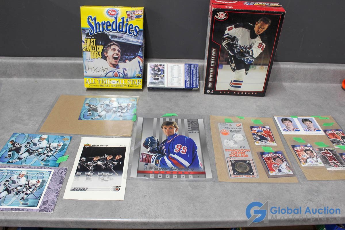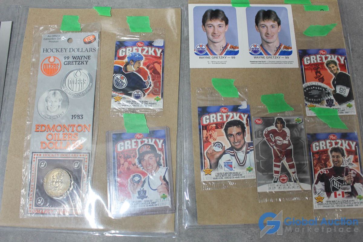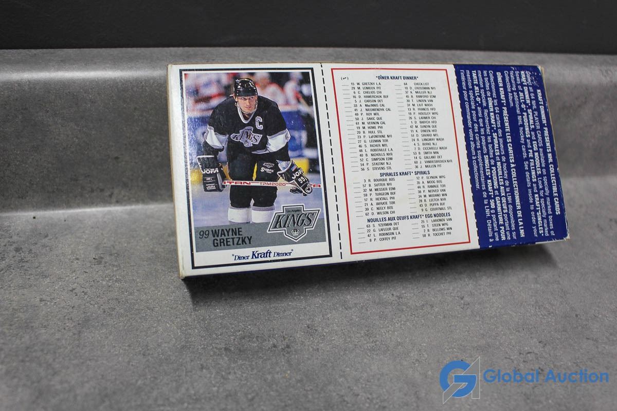 1981 Red Rooster Cards, 1983 Edmonton Oilers Hockey Dollar, Shreddies Cereal Box, Post Honeycomb Cereal Box, Kraft Dinner Box, Post Cereal hockey cards & over sized cards.