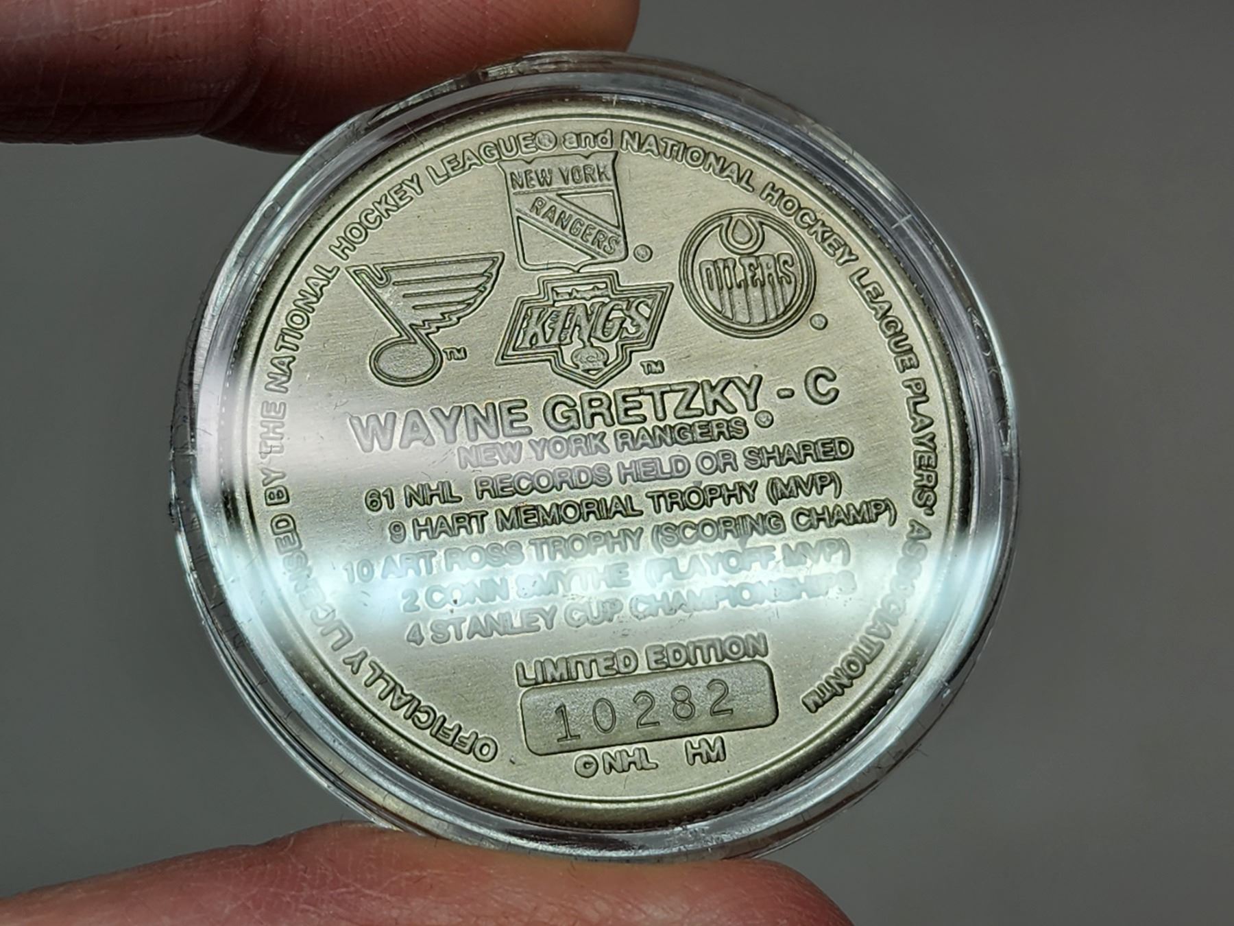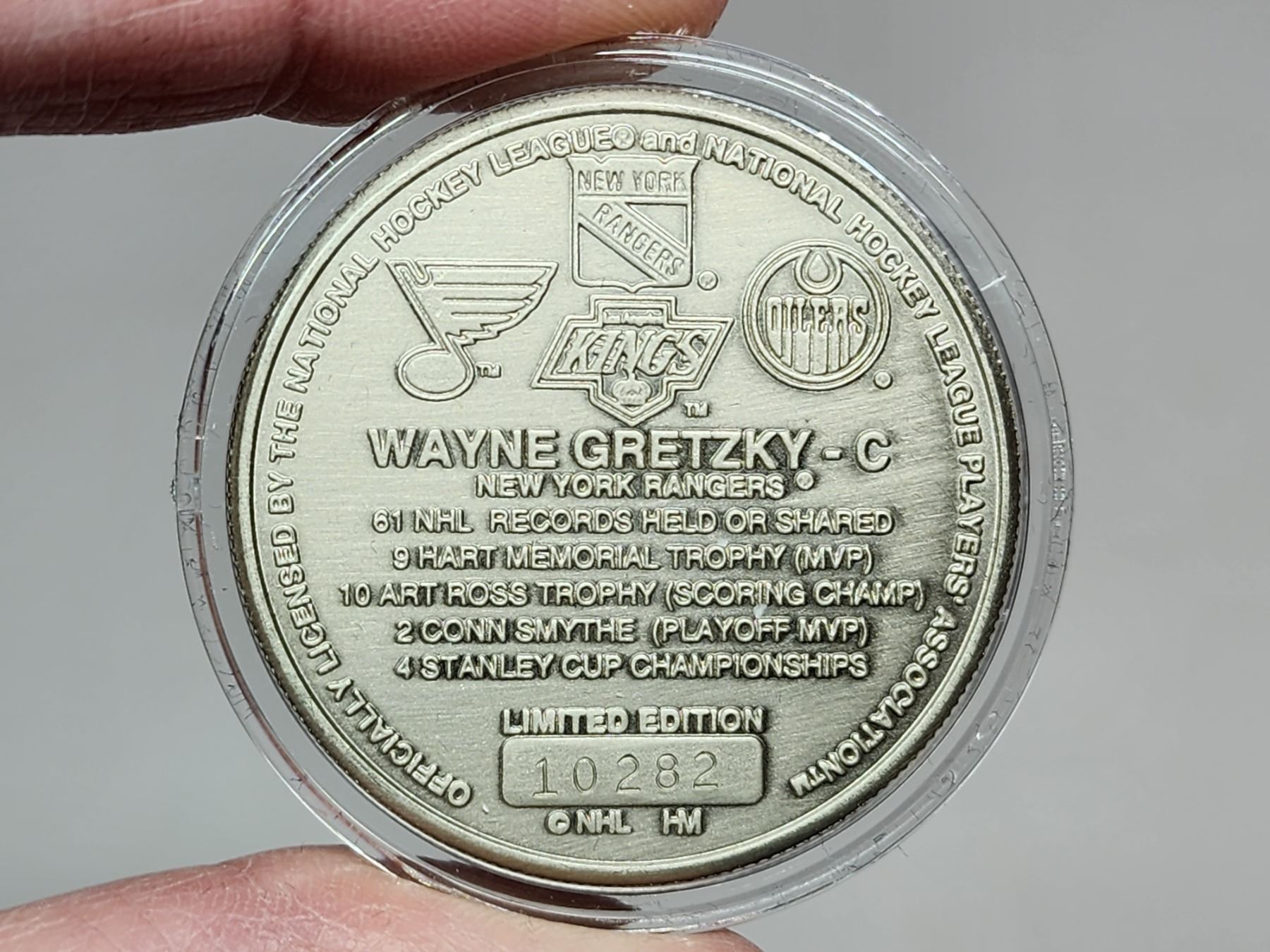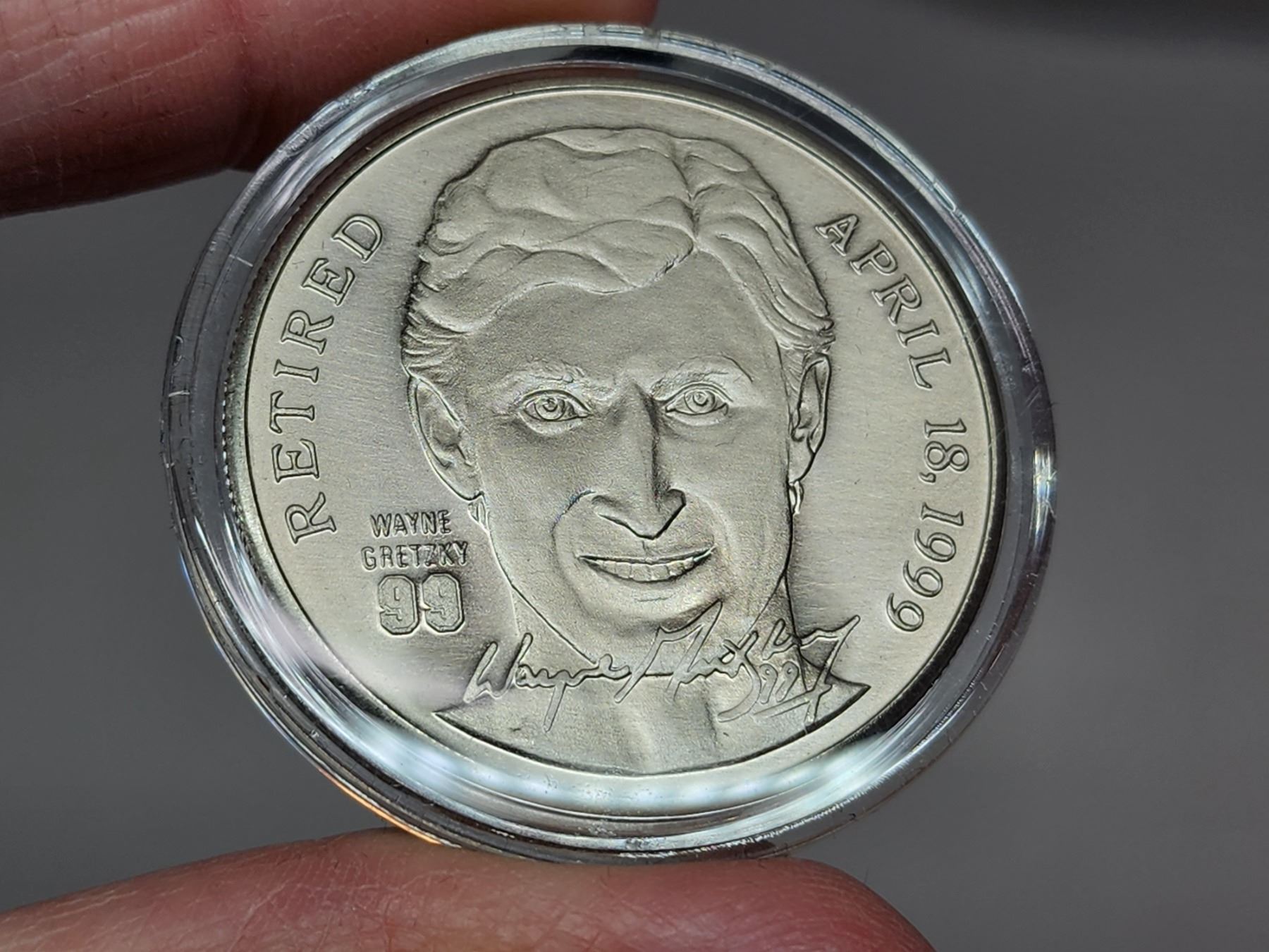 Wayne Gretzky Commemorative Retirement Medallion. Retired April 18, 1999. Housed in its original case of issue.