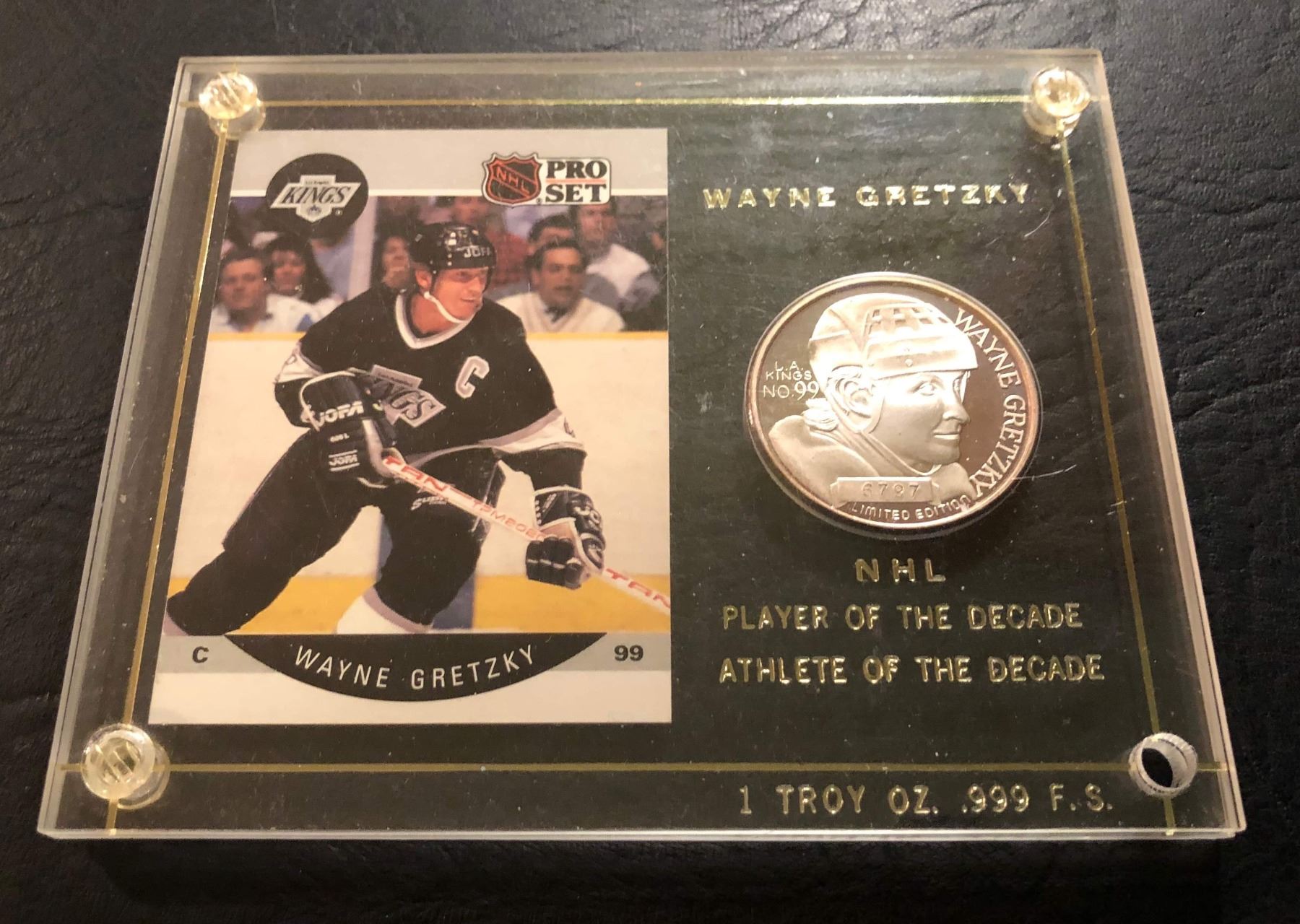 Wayne Gretzky LA Kings 1 Troy Oz 999 Fine Silver Round w/ Card Display