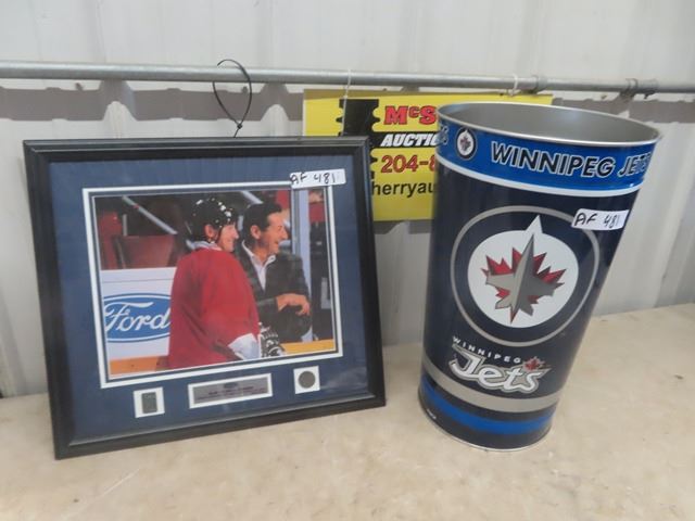 Wayne Gretzky Picture 18" x 20" & WPG Jets Garbage Can 11" x 19 "