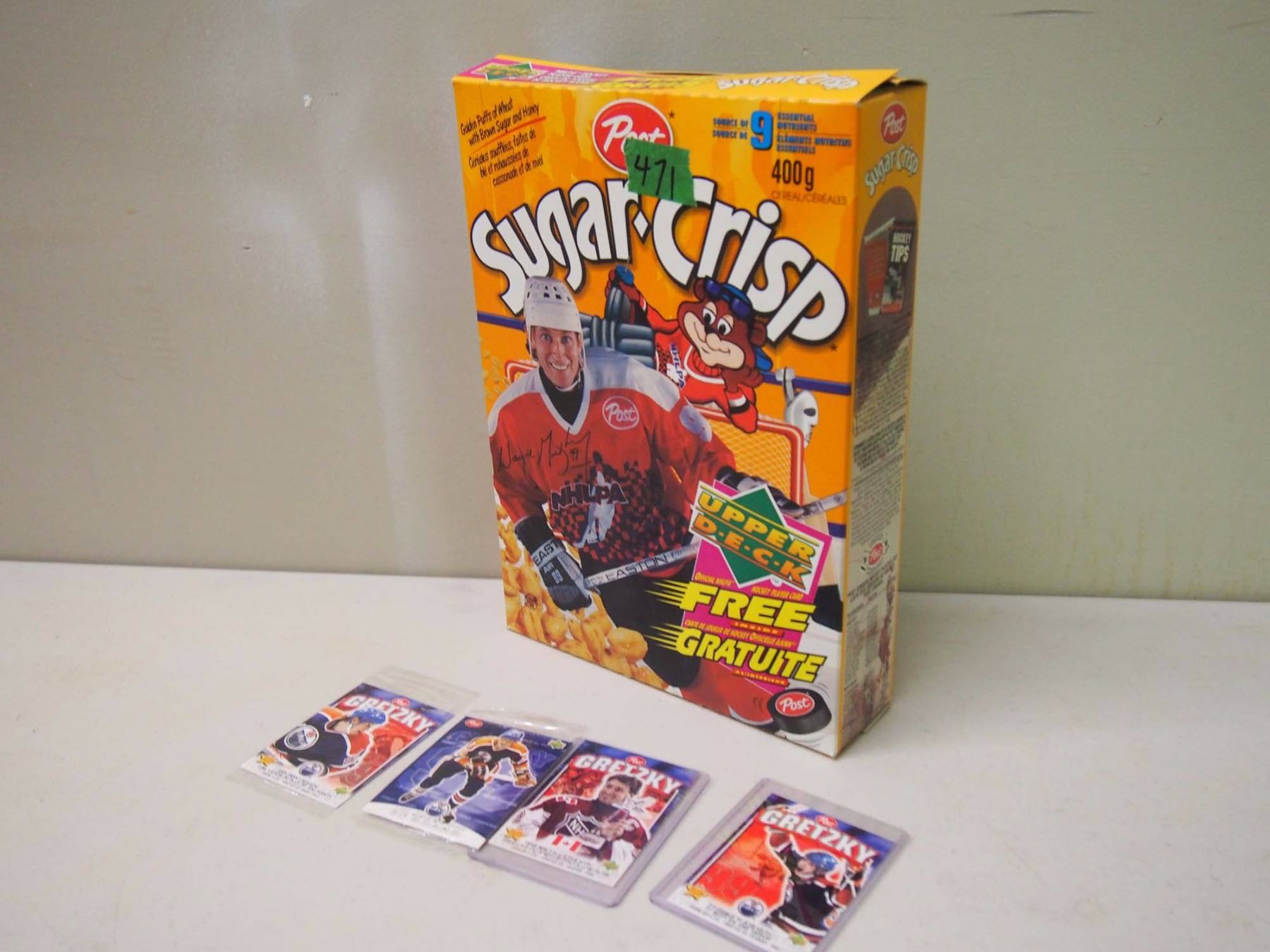 Wayne Gretzky – Post Sugar Crisp Cereal Box intact & 4 Post Cereal Hockey Cards