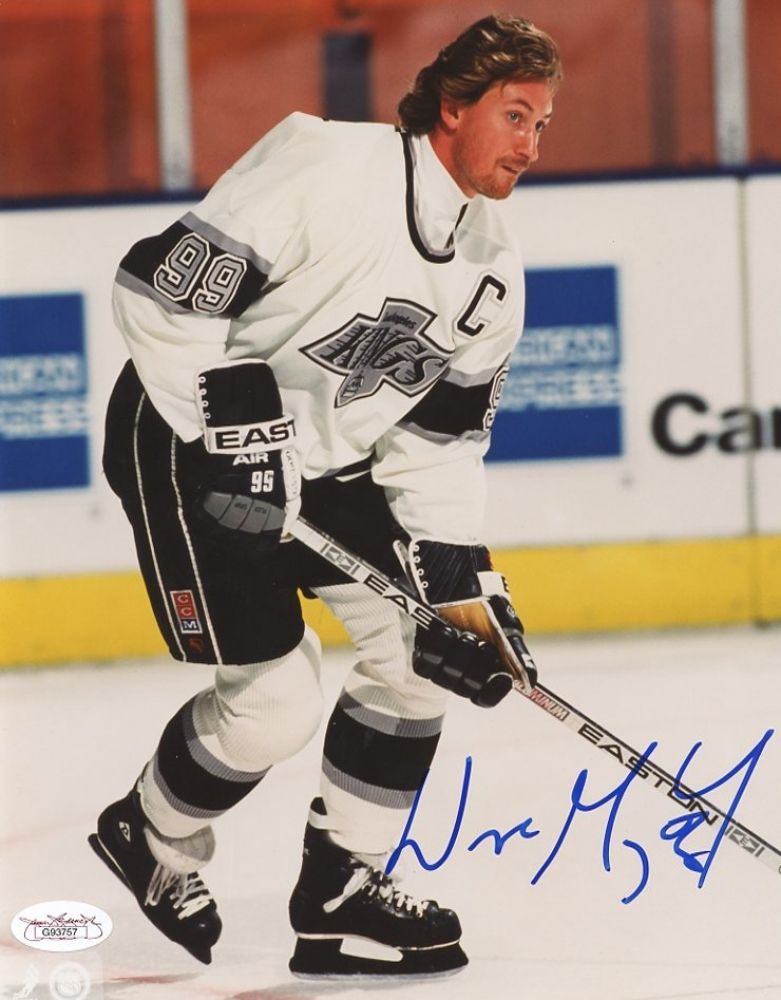 Hand-signed in blue felt-tip pen by Wayne Gretzky (HOF). Autograph includes a James Spence Authentication (JSA) hologram and matching COA for authenticity purposes.