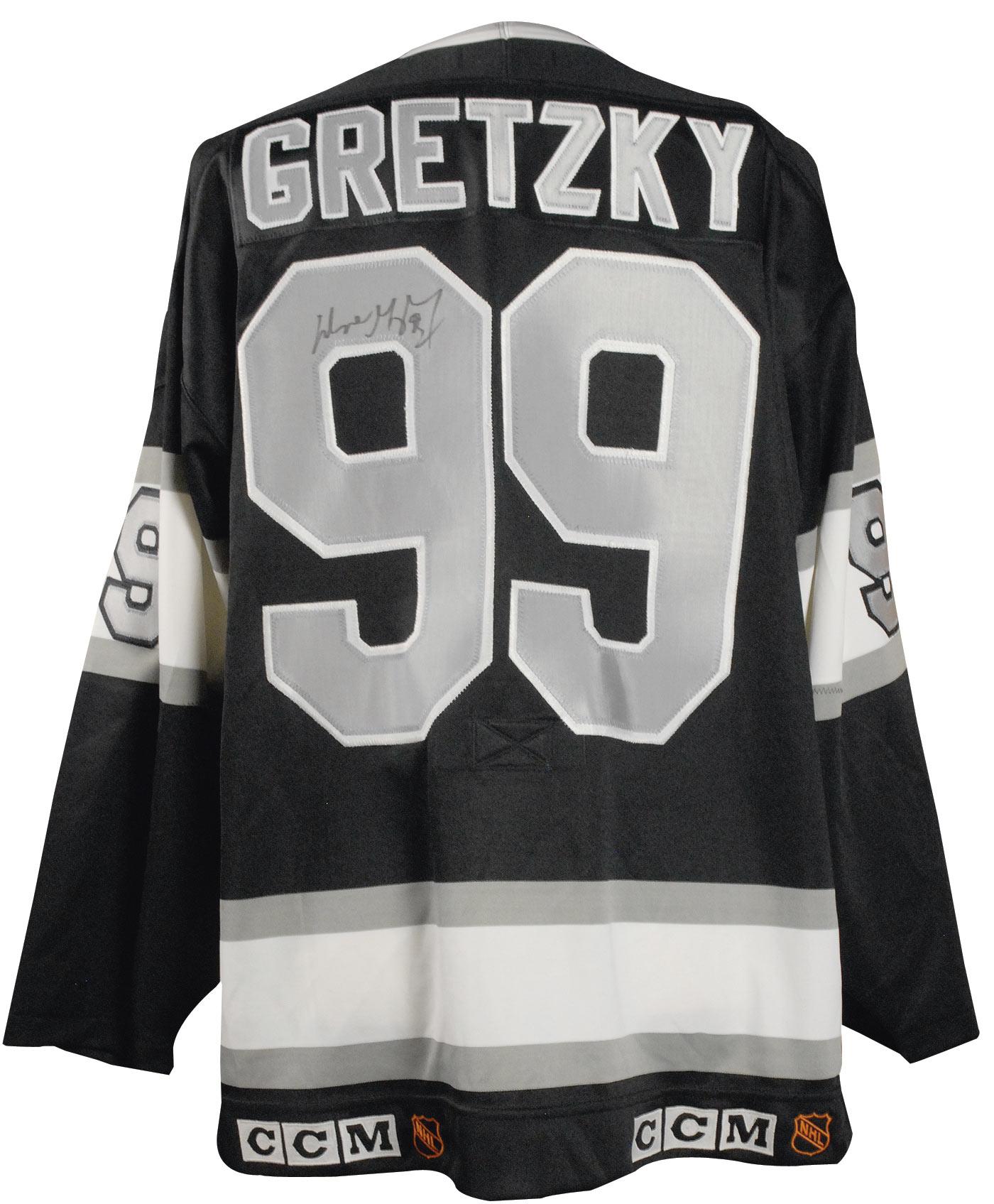 Official CCM replica Los Angeles Kings hockey jersey, with sewn on letters and numbers, signed in black felt tip on the number on the back. In fine condition.