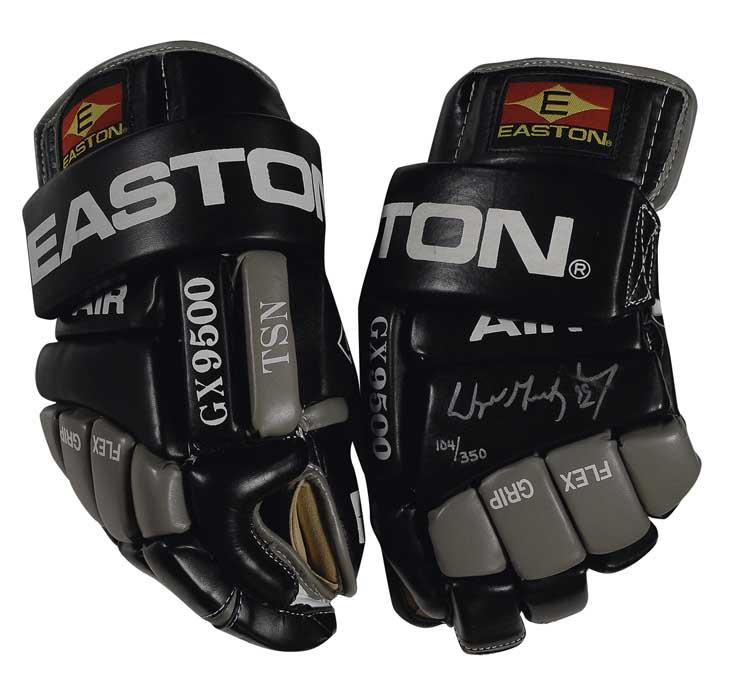 Limited edition pair of Easton GX 9500 hockey gloves, #104/350, signed in silver ink on the left-handed glove. In very fine condition. Pre-certified Steve Grad/PSA/DNA and RRAuction COA.